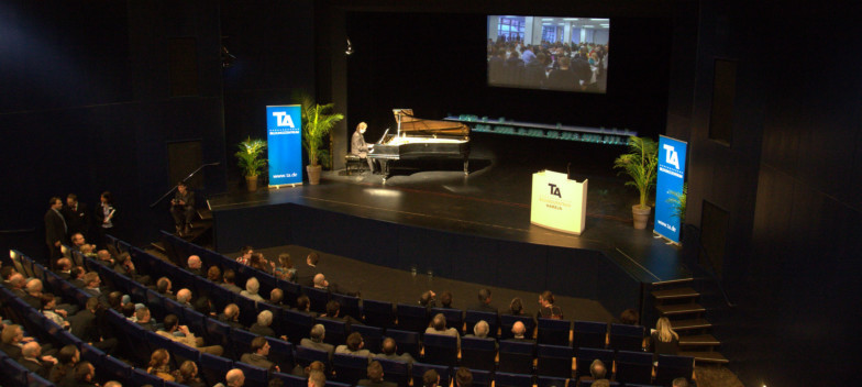Die Gäste – neben den Absolventen und ihren Angehörigen geladene Gäste aus Politik und Wirtschaft, Vertreter der IHK-Prüfungsausschüsse, wie auch eine Delegation der BASF aus Ludwigshafen, die vor Ort über 40 ihrer Fachkräfte zu Industriemeistern IHK weiterbilden ließ – wurden vom Geschäftsführer der TA, Frédéric Philipp Thiele, durch den Abend geführt.
