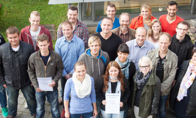 Sie werden nachfolgende Generationen von Mitarbeitern an die Hand nehmen, sie ermutigen, sie anleiten: Die Teilnehmer des Lehrgangs Ausbildereignungsprüfung IHK haben soeben im Audimax ihre TA-Zertifikate erhalten. Der Vorsitzende des TA-Vorstands, Werner Thiele, regte in seiner Ansprache dazu, sich im Leben an positiv eingestellten Menschen zu orientieren. „Sie gehen den richtigen Weg“, ist Thiele überzeugt. Bei der schriftlichen Prüfung morgen stellen alle ihr neu erlerntes Wissen unter Beweis. Wir wünschen gutes Gelingen – und sind überzeugt, dass es jeder schaffen kann!