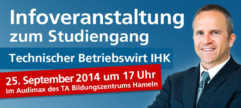Steigen Sie in die unternehmerische Führungsebene auf: Als Technischer Betriebswirt IHK managen Sie an der Schnittstelle zwischen kaufmännischem und technischem Aufgabenbereich. Wir laden herzlich für Donnerstag, 25. September, zum Themenabend ein. Interessierte erfahren, was die höchste IHK-Aufstiegsfortbildung auszeichnet und was sie beinhaltet. Informieren Sie sich unverbindlich aus erster Hand von einem Dozenten, der auch Mitglied im Prüfungsausschuss ist. Dazu berichtet unsere Weiterbildungsberatung, wie Sie in den Genuss einer finanziellen Förderung kommen. Infos zum Studiengang lesen Sie auch hier: http://www.ta.de/technischer-betriebswirt-ihk.html