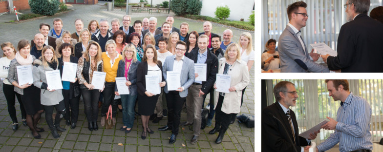 Es war ein besonderer Immobilienmakler-IHK-Lehrgang, der heute verabschiedet wurde. Da vereinte sich der Spaß am Erreichen neuer Ziele mit dem Ehrgeiz am Lernen. Mehr noch: Die neuen Immobilienmakler haben sich super verstanden – wie eine große Familie. Passend, dass Mutter und Tochter gemeinsam dabei waren, in einem Fall sogar gleich drei Familienmitglieder, die sich gemeinsam ein neues Standbein aufbauen wollen. Bei der Feier im Audimax lobte TA-Vorsitzender und Gründervater Werner Thiele alle Absolventen aus beiden Gruppen für ihren Fleiß. „In relativ kurzer Zeit haben Sie viel Wissen mitgenommen – darauf lässt sich weiter aufbauen.“ Fest steht, dass auch neue Freundschaften und berufliche Netzwerke entstanden sind. Wir wünschen Ihnen und Euch alles Gute und eine erfolgreiche Zukunft!