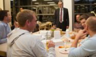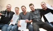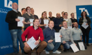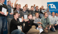 Kräftiger Jubel, beste Stimmung und stolze Absolventen: Bei der Meisterfeier gestern Abend im TA Bildungszentrum in Hameln haben wir mehr als 160 Absolventen verabschiedet: Industriemeister Metall IHK in Vollzeit und Abendform, außerdem eine Gruppe Wirtschaftsfachwirte IHK. Für sie endet jetzt eine intensive, lehrreiche – und einzigartige Zeit. Spaß hat’s gemacht, Freundschaften sind entstanden. Darüber hinaus haben sich Netzwerke gebildet. Zum „über den Tellerrand schauen“ forderte TA-Gründer Werner Thiele seine Schützlinge auf. Schließlich könne jeder davon profitieren, wenn er die neuen Kontakte auch beruflich nutzt und Know-how austauscht. „Wir alle müssen uns fordern, solange es geht“, appellierte Thiele. Das lebensbegleitende Lernen sei elementar in einem Land, dessen einziger Rohstoff das geistige Gut sei. Der Vorsitzende des Vorstands zollte den Absolventen schon jetzt Respekt für ihre Leistung. Die Leiterin der Hamelner IHK, Dr. Dorothea Schulz, lobte anschließend den hohen Ausbildungsstandard beim TA Bildungszentrum. Sie ist überzeugt, dass der Abschluss mit dieser Vorbereitung klappen wird. Vom TA-Team gab’s im Audimax die Zertifikate und Glaspokale überreicht. Dann begann der gesellige Teil im Casino: Grünkohl mit Bregenwurst, dazu erfrischende Getränke – die passenden Stärkung kurz vor den Prüfungen. Wir wünschen allen Teilnehmern dabei viel Erfolg!