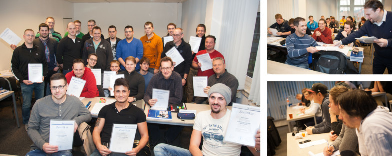 Die TA-Zertifikate hat die TA-Studienplanung schon gestern in den Gruppen verteilt – sie dienen als Teilnahmebestätigung. Das IHK-Zeugnis gibt es direkt im Anschluss an die praktische Prüfung. Wir wünschen allen Teilnehmer viel Erfolg und stets ein gutes Händchen beim Ausbilden.