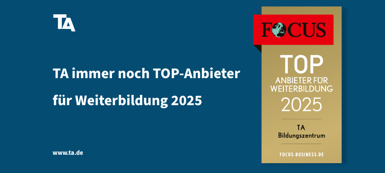 Auch 2025 dürfen wir uns wieder „TOP ANBIETER für WEITERBILDUNG“ nennen. Verliehen wurde der Titel von FOCUS BUSINESS.