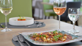Frühstück inklusive, mittags und abends freie Wahl. Freuen Sie sich auch auf das große Frühstücksbuffet mit Kaffeespezilalitäten und feinen Tees, Eierspeisen, Müslis, hausgemachter Marmelade, Obst und vielem mehr. Mittags haben Sie die Wahl zwischen verschiedenen Menüs – abends à la carte. Für den gelungenen Ausklang eines interessanten Studientags steht auch die Hotelbar mit internationalen Getränken für Sie bereit.