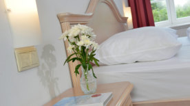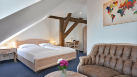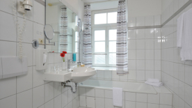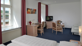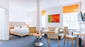 Alles drin: Ihr Zimmer im Seminarhotel. Zur Ausstattung gehören neben einem bequemen Bett natürlich ein Flatscreen-TV, Telefon und kostenfreier WLAN-Zugang sowie ein Zimmersafe. Jedes Zimmer verfügt über ein eigenes Bad mit Dusche oder Badewanne, verschiedenen Kosmetikartikeln sowie einen Fön. Bei den 84 Zimmern ist ein leckeres Frühstück immer inklusive.